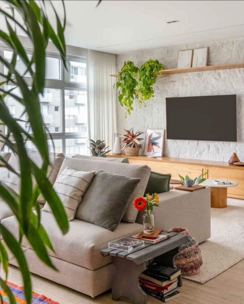 This sort of plant life doesn’t just make the space where you watch TV look nicer, it also helps you to relax.