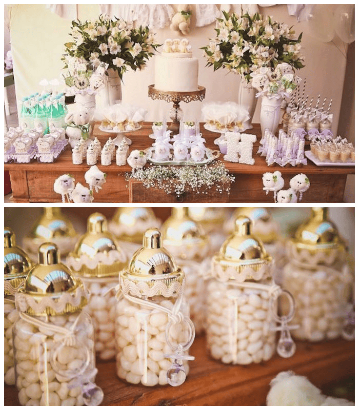 - Reuse baby items: Use onesies, baby shoes, and toys in the décor to double as keepsakes.