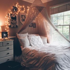 This bedroom is a dreamy escape filled with soft pinks and charming details. Twinkling fairy lights and tree-like decor create a magical atmosphere perfect for daydreaming. With cozy bedding and a touch of elegance, it’s an ideal retreat for any teenager who loves a fairy tale vibe.