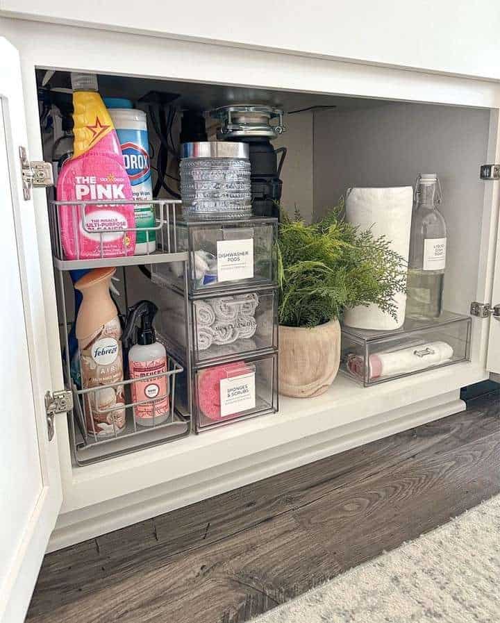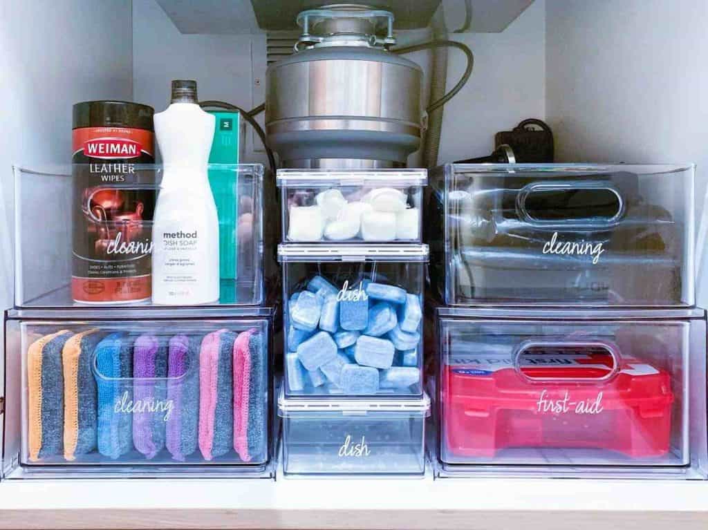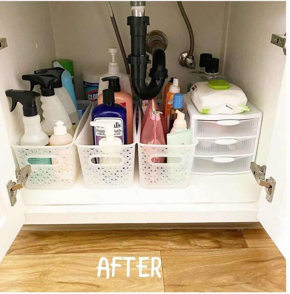 - No temporary items – if something does not belong under the sink, find its proper home immediately. There is no “temporarily” in that cupboard. Temporary is always permanent.