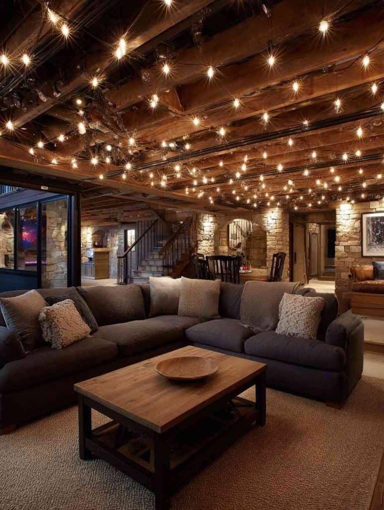 The ceiling often sets the mood of the entire basement — whether you want cozy and rustic, sleek and modern, or playful and creative.