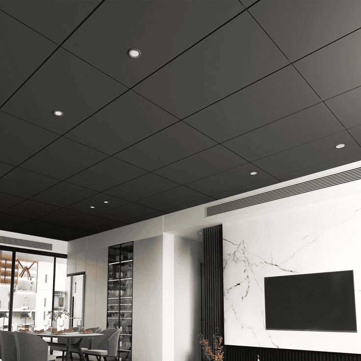 Lightweight and water-resistant, PVC ceiling panels are perfect for damp basements. They’re easy to clean and come in different textures and finishes.
