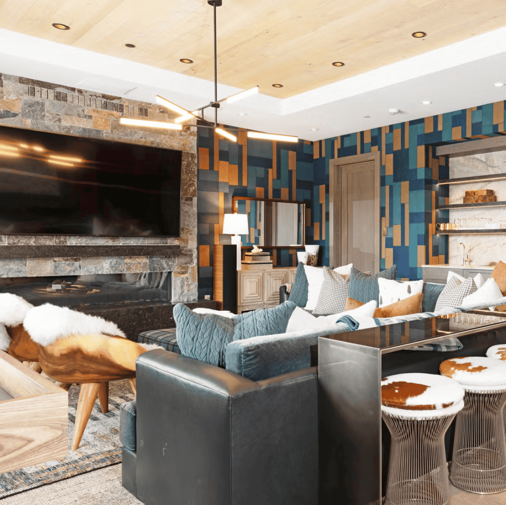 Why it works: Wood instantly makes a basement feel more like a cozy living space.