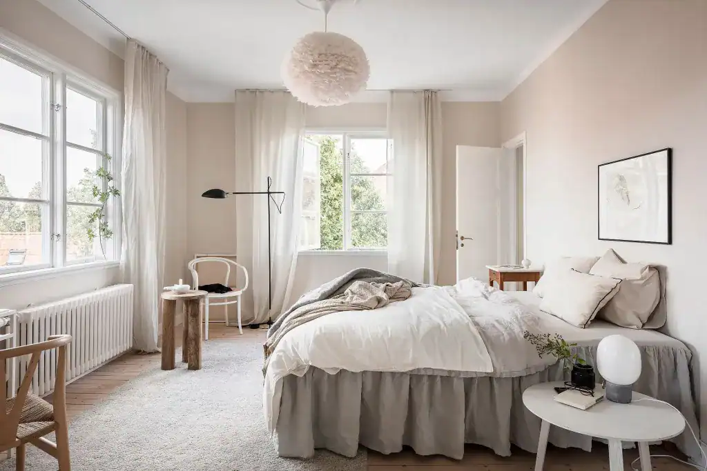 This isn’t a “pink bedroom.” It’s more like a whisper of warmth.