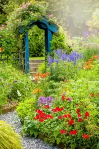 Rooted in English tradition, cottage gardens are informal, lush, and romantic — a charming blend of perennials, herbs, climbing roses, and winding paths.