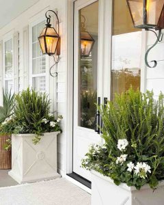 I had a very clear idea of what I wanted, a picture in my head. I wanted two matching white planters, one each side of the door, with something green and a bit showy spilling out. You know, the sort of planters that give you the impression someone has given the porch a lot of thought.