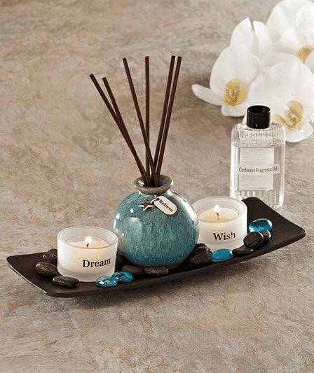 - How to do it: Use a small glass diffuser or elegant bottle with reed sticks.