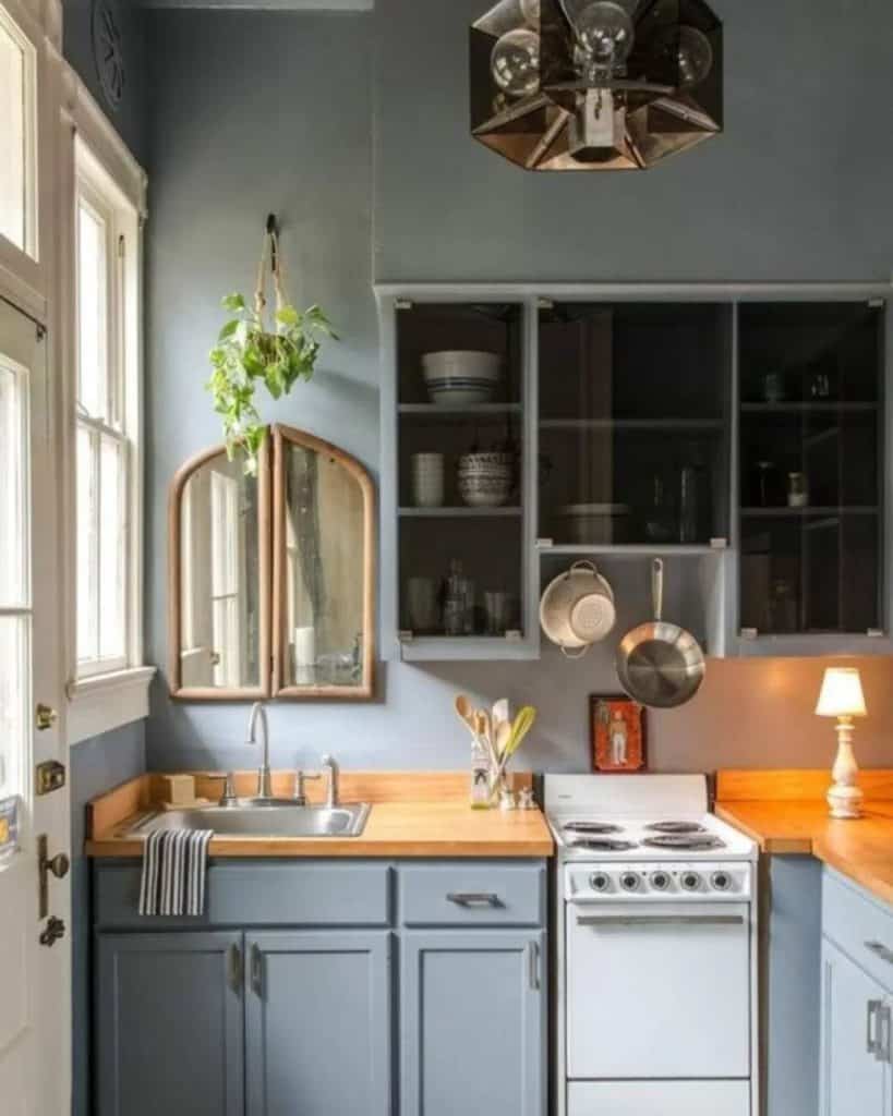 Removing cabinet doors or using sliding doors instead of traditional swing-out ones saves space and makes items more accessible.