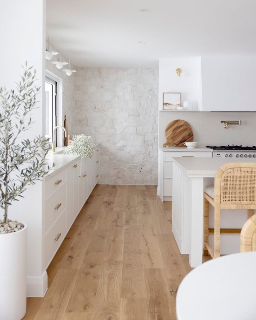 Extending the same flooring into adjacent spaces creates a seamless look, making the kitchen feel larger.
