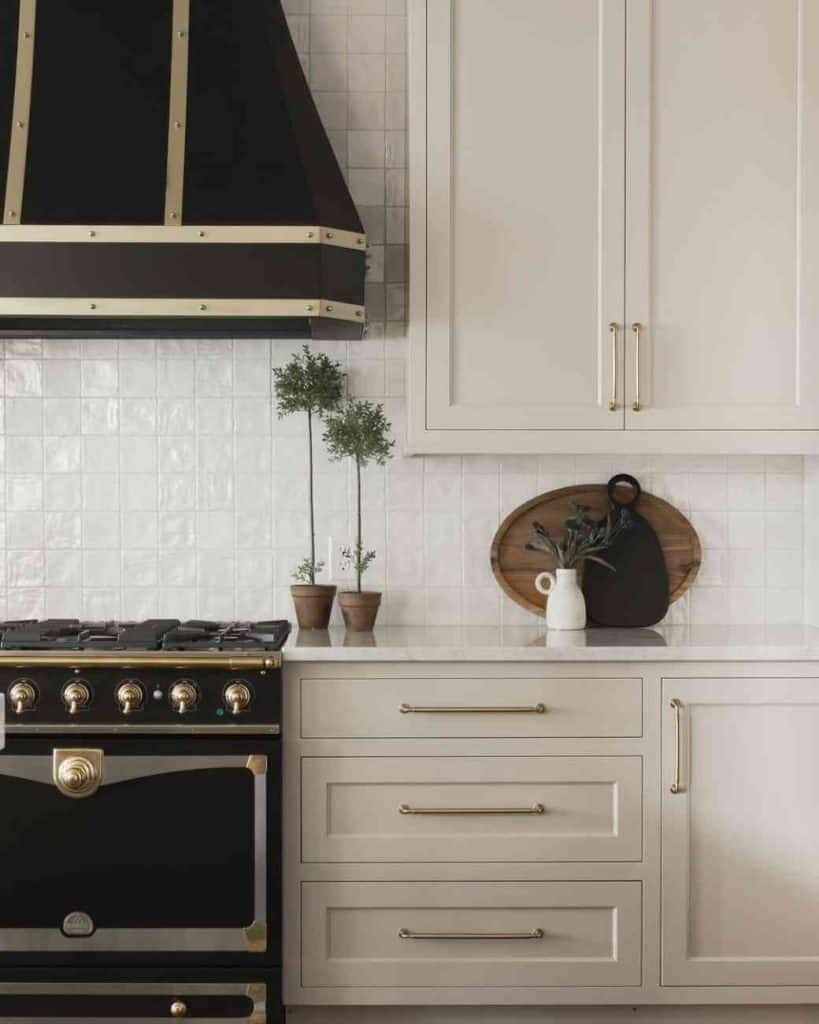 Mirrored backsplashes, glossy finishes, or glass cabinet doors bounce light around the room, giving an illusion of depth and space.