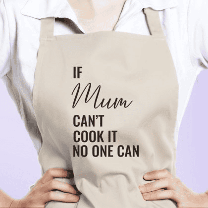Not a novelty one. A proper kitchen apron in a fabric she’d actually choose — linen, a good weight, in a colour she wears. The kind that looks good and functions well and makes the kitchen feel more like hers.