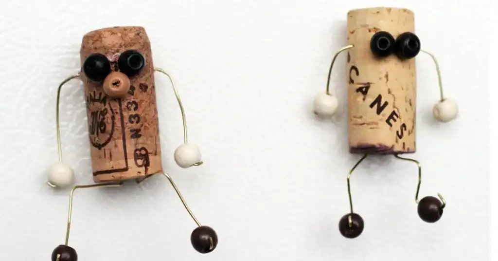 Materials: Cork rounds, small magnets, glue, paint, markers, decorative elements.