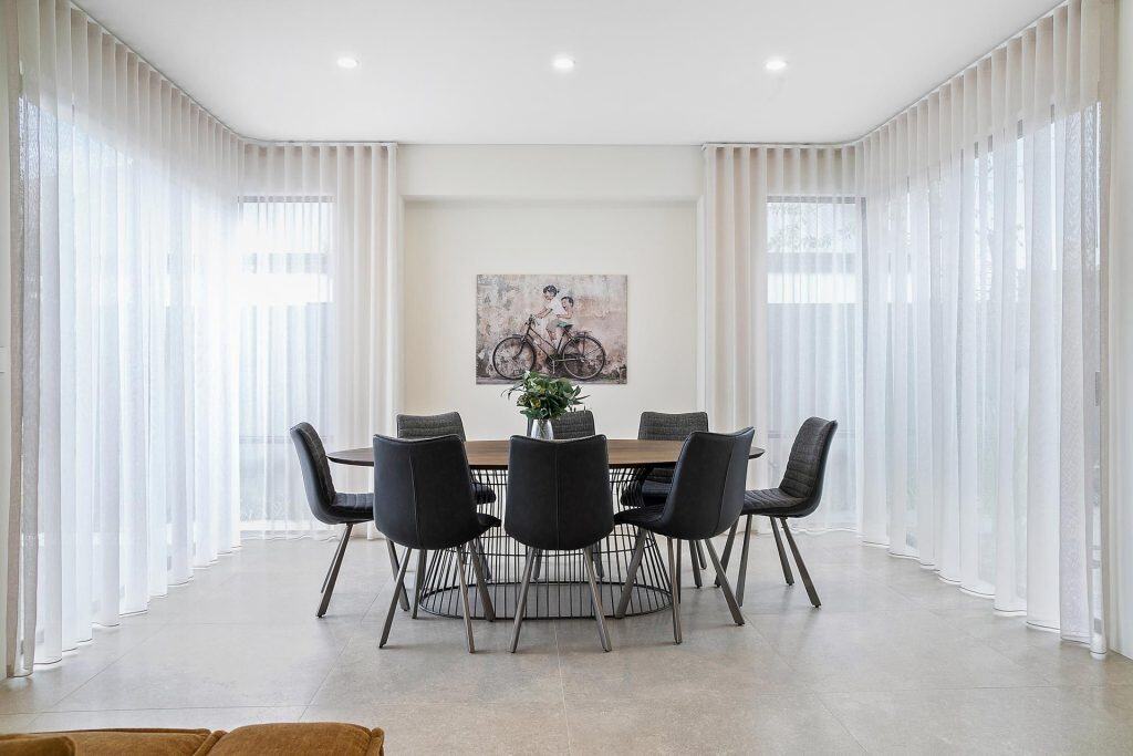 - Layered curtains = flexible light filtering