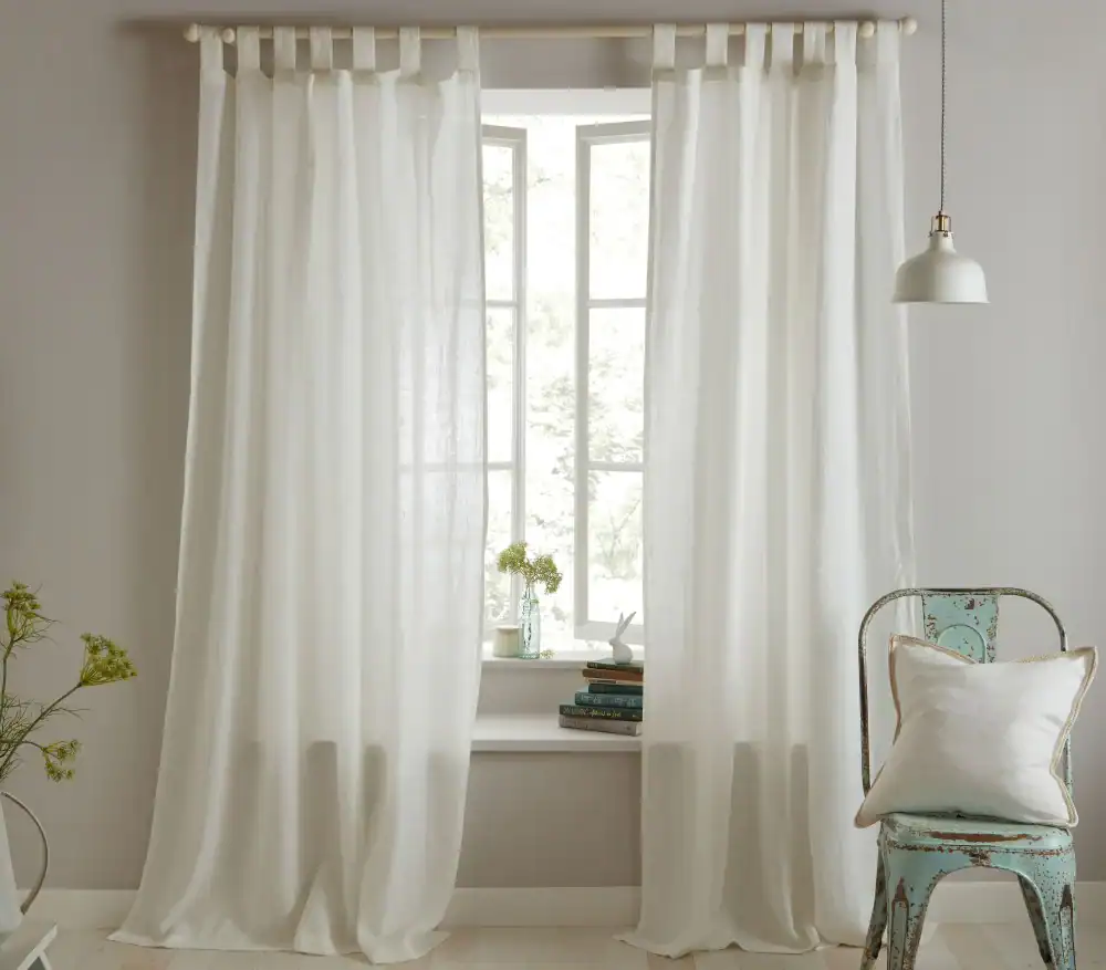 - Farmhouse: tab-top or linen curtains