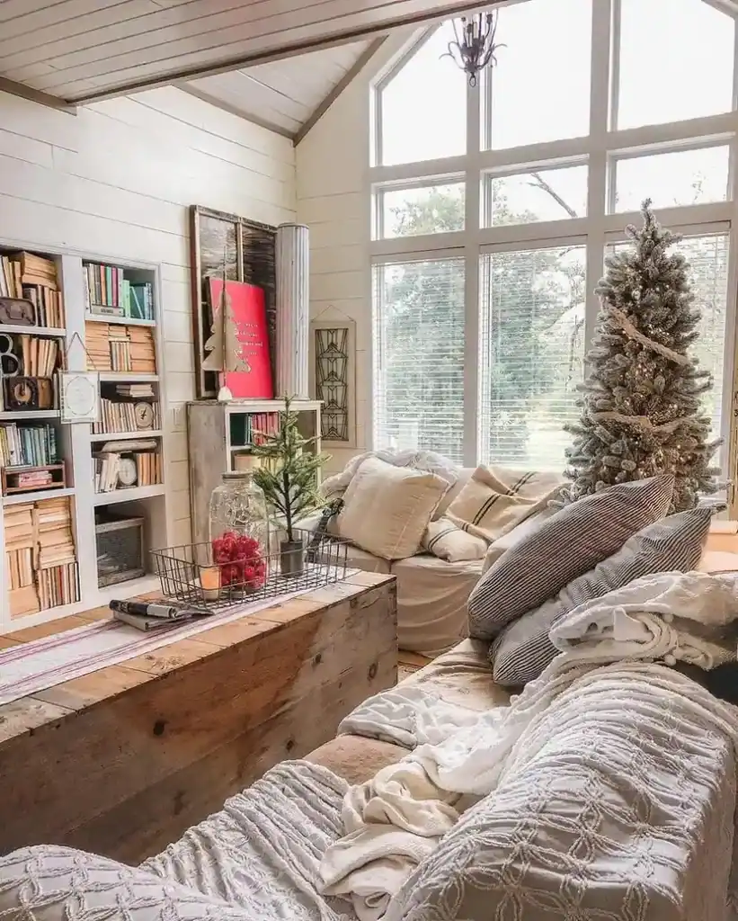 After Christmas, bright colors can feel overwhelming. A palette of soft whites, creams, beiges, and warm neutrals instantly creates calm. Think fluffy throws, pale pillows, and lightweight curtains.