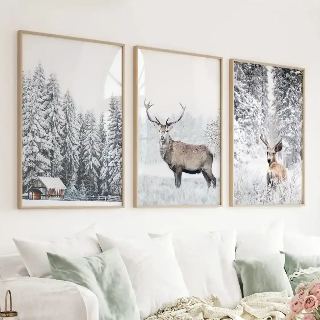 A simple shift in wall art can refresh an entire room. Winter artwork often includes: